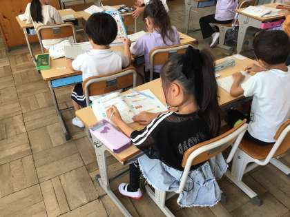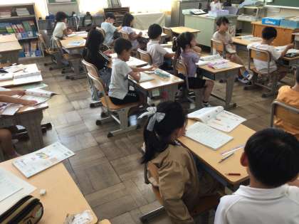 1年生算数では「10をこえるかず」の学習をしています。教科書の挿し絵をつかって数えながら、問題練習をしました。