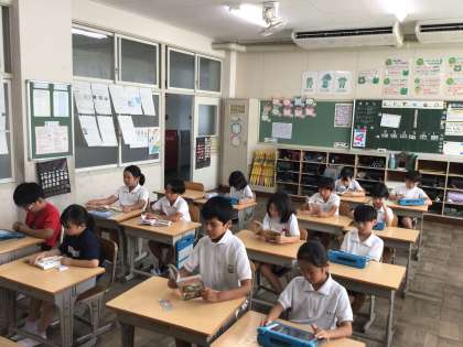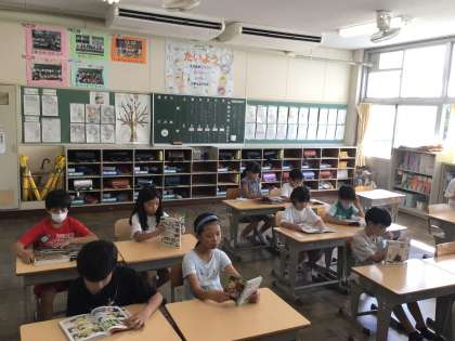 チャイムがなると静かに読書が始まりました。落ち着いた雰囲気で一日がスタートできました。
