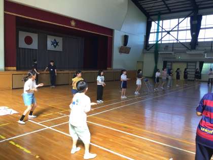 9/9 5年総合 公開日 2025/09/09 更新日 2025/09/09 各学年から 5年総合では、「キャンプに向けて準備をしよう」というめあてで、体育館で活動しましていました。係の指示に従ってキャンプファイヤーのときのダンスやクイズのときの動きを確認していました。