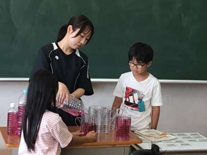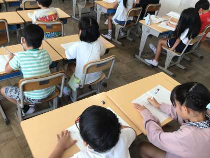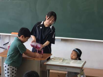 2年算数では、かさの単元を学んでいます。「ますを使ってかさをあらわそう」というめあてで学習を進めていました。まほうの水をますで実際にはかり、1Lのますが5こ分になったから5Lになることを確認しました。