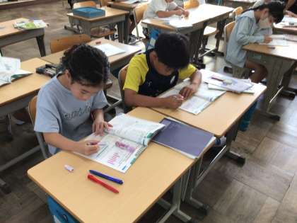 「表とグラフ」の学習です。学習のまとめとして、算数の友の問題を解きました。表の数字を正しく読み取ることが、正しいグラフをかくポイントです。注意深く問題を読んで、解いていました。