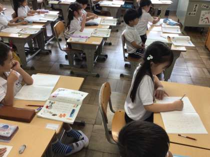 9/11 1年生国語 公開日 2025/09/11 更新日 2025/09/11 各学年から 1年生国語では「かぞえうた」の学習をしています。かぞえうたの中にある「一」「ニ」「三」〜と漢数字の学習をしました。