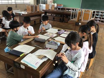 9/11 4年音楽 公開日 2025/09/11 更新日 2025/09/11 各学年から 4年音楽では、「小さな世界」と「まきばの朝」を歌った後、「まきばの朝」の内容を音楽ワークで確認しました。リズム練習では、「楽しいマーチ」の手拍子が前回より正しく打つことができました。リコーダー練習もスタッカートに気をつけて吹くことができました。