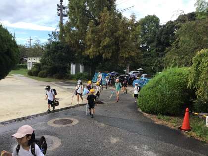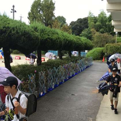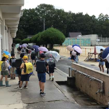 雨降りの朝となりましたが、いつも通り元気よく登校してきました。昇降口でかさをたたみ、教室に向かっていきました。