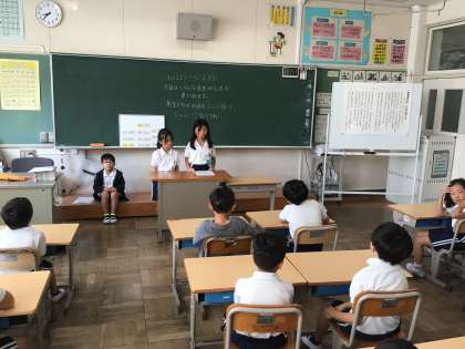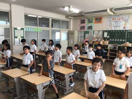 朝の会では、健康観察をしたり、朝の歌を歌ったりしていました。係の子たちがしっかりと朝の会を進めていました。