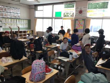 5年生は今日からキャンプになります。教室ではウキウキした表情で待機していました。