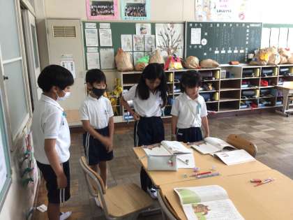 9/18 2年生国語1 公開日 2025/09/18 更新日 2025/09/18 各学年から 2年生国語では「ニャーゴ」の音読発表会に向けてグループごとに練習しました。みんなに聞いてもらうために、声の大きさに気をつけて読む練習をしました。