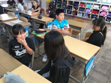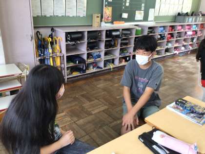 毎週木曜日のスキルタイムはえがおタイムです。今月は「どっちをえらぶ」です。2つの選択肢から1つを選び、自分の選んだものを伝え合うというものです。どの学級からも明るい話し声が聞こえてきました。