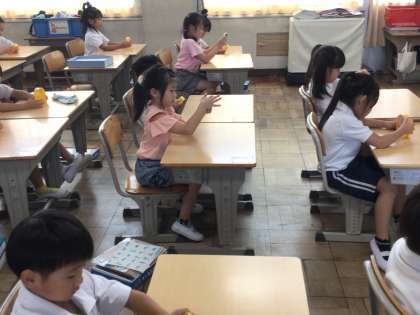 9/18 1年生算数1 公開日 2025/09/18 更新日 2025/09/18 各学年から 1年生算数では「時計」の学習をしています。1日の生活の中で、何時や、何時半を読めるように練習しました。算数セットの時計をつかって実際の時間を表してみました。