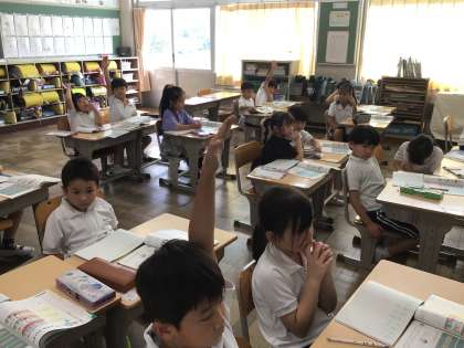9/18 1年生算数2 公開日 2025/09/18 更新日 2025/09/18 各学年から 1年生算数では「三つの数の計算」の学習をしています。教科書の絵を見ながら、「5+3+2」の計算の仕方を考えました。