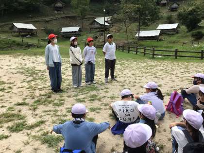 9/18 5年生キャンプ オリエンテーリング 公開日 2025/09/18 更新日 2025/09/18 各学年から オリエンテーリングに出発する前に、一時雨が降りましたが、その後オリエンテーリングを行うことができました。短時間でしたので、見つけられたコントロールポストは少しでしたが楽しく森の中を散策することができました。