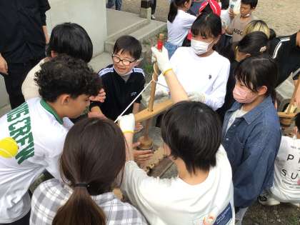 班で協力して、声をかけ合って、1、2、1、2!