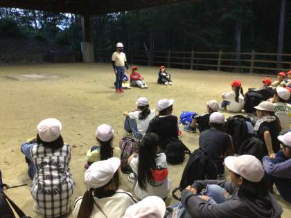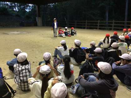夕方になり、六所山は少し涼しくなりました。一日を振り返る「夕べのつどい」です。一日の疲れも見せず、しっかりと気持ちを切り替えて、係の子や先生の話をしっかりと聞くことができました。