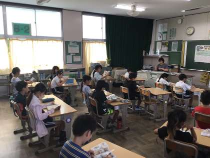 8時25分までに朝の支度を済ませ、チャイムで気持ちを切り替えて静かに読書が始まりました。今日も落ち着いた雰囲気で一日がスタートできました。
