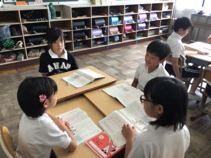 9/19 3年国語 公開日 2025/09/19 更新日 2025/09/19 各学年から 3年国語では、グループの話し合いの言葉を決めようの単元を学んでいます。「話し合いの流れをかくにんしよう」というめあてで学習を進めていました。班の中で分担して、教科書を読み進めながら話し合いの流れを確認していました。