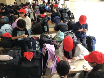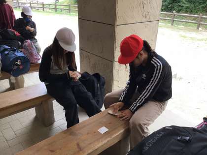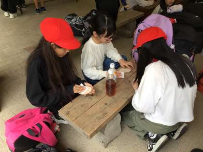 9/19 5年生キャンプ ウッドバッジ作り1 公開日 2025/09/19 更新日 2025/09/19 各学年から 木片の表面を紙やすりで磨いてすべすべにしてから、好きな絵を描いて作ります。所員さんに確認しながら紙やすりで必死に磨いています。