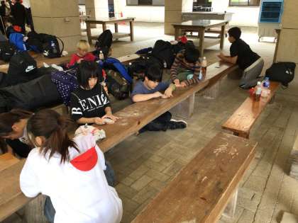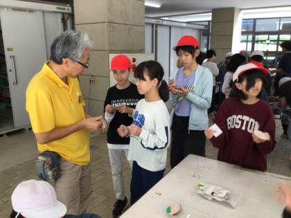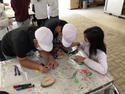 9/19 5年生キャンプ ウッドバッジ作り 公開日 2025/09/19 更新日 2025/09/19 各学年から 木の表面がだんだんつるつるになってきました。つるつるになった木片に、キャンプファイヤーの絵やキャンプの日付など思い思いの絵や言葉を書きました。