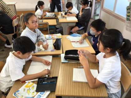 9/22 4年生算数 公開日 2025/09/22 更新日 2025/09/22 各学年から 3桁÷2桁のわり算の学習です。桁数が多くなるほど、答えの数字を書く場所を間違えやすくなります。どこに数字を書くのかを班で説明し合いました。友達の反応を見ながら、説明する姿が見られました。