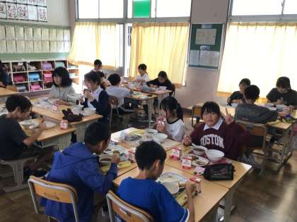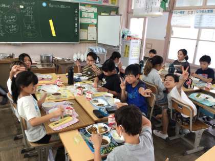 9/22 楽しい給食1 公開日 2025/09/22 更新日 2025/09/22 各学年から 今日の献立は、ナメコの味噌汁、鯖の煮付け、五目豆、味付けのりで、箸を使う練習になるものです。上手に箸を使って食べることができましたか?