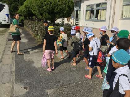 1年生体育では、水泳学習をしています。今日で最後の水泳学習です。今まで、スイミングスクールでたくさん練習し、顔を水につけて泳げるようになりました。