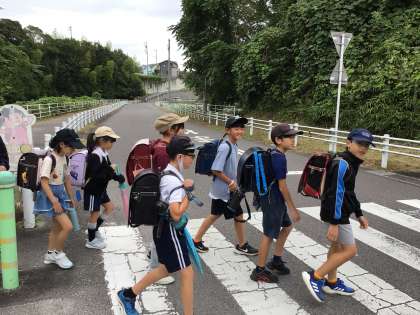 朝の登校の様子です。交通ルール、マナーを守ってこれからも登下校していきましょう。