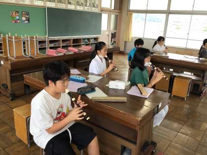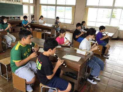 6年音楽では、「リコーダーのパートを決めよう」というめあてで学習を進めていました。「雨のうた」のフレーズを練習していました。