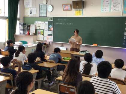 9/25 5年図工 公開日 2025/09/25 更新日 2025/09/25 各学年から 5年図工では、これから読書感想画に取り組んでいきます。宮沢賢治の名作「銀河鉄道の夜」を先生が読み、情景を思い浮かべていました。