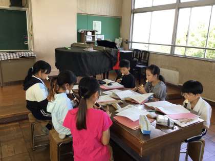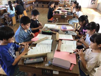 4年音楽では、「国歌」と「小さな世界」を歌いました。リズム練習「楽しいマーチ」では、テンポを変えても音の重なりを感じながら手拍子ができるようになってきました。リコーダー練習では、「陽気な船長」を互いの音を聴き合いながらグループ練習をしていました。
