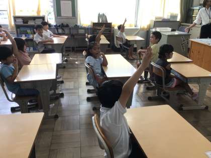 授業参観で道徳の授業を行いました。インターネットの動画に熱中するとどんなことが起こるかを考えました。