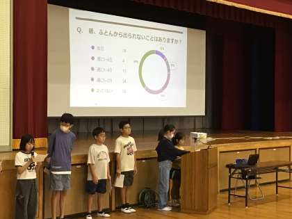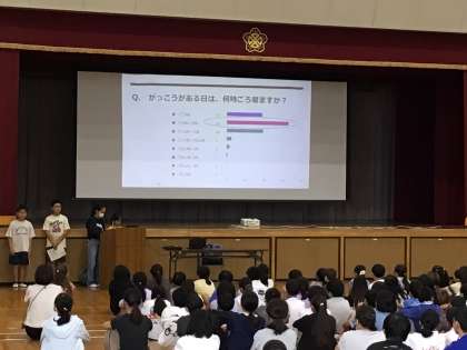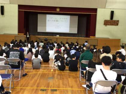 9/27 学校保健委員会2 公開日 2025/09/27 更新日 2025/09/27 各学年から 保健委員会の発表の後、スマホ依存防止学会上席アドバイザーで学校薬剤師の先生を講師としてお招きして、「ゲーム・スマホの体への影響について」というテーマで講演をしていただきました。