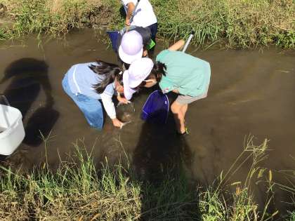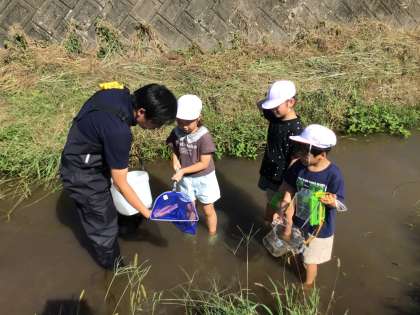 9/30 2年生岩本川探検3 公開日 2025/09/30 更新日 2025/09/30 各学年から 水中メガネで川の底をのぞくと生き物や川の中の様子を見ることができます。図鑑で見た生き物を実際に見ることができると嬉しいですね。生き物の名前が分からないときは、矢作川研究所の博士に見せるとすぐに教えてくれます。