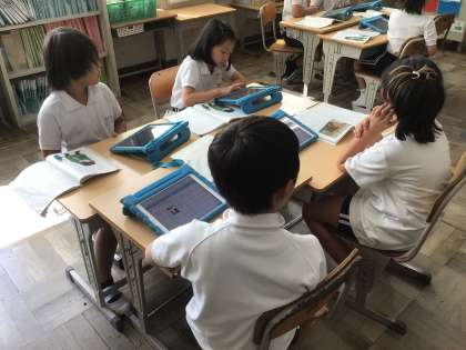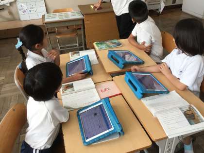 9/30 3年生国語 公開日 2025/09/30 更新日 2025/09/30 各学年から 3年生国語では「サーカスのライオン」の学習をしています。今日は、物語文の場面分けを、主人公「じんざ」の気持ちを考えながらわけました。学習用タブレットをつかって考えることができました。