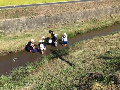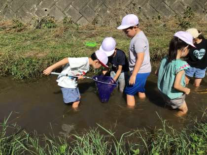 岩本川には生き物がたくさん棲んでいます。それも、岩本川を守る創遊会のみなさんや矢作川研究所のみなさんのおかげです。創遊会のみなさんは、今日のために草刈りをして、子どもたちが探検をしやすくしてくださいました。また、暑い中、見守りボランティアに来てくださったお家の方々、ありがとうございました。