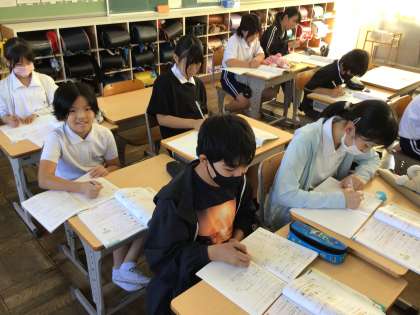 9/30 スキルタイム 公開日 2025/09/30 更新日 2025/09/30 各学年から 太陽の時間の後はスキルタイムです。漢字ドリルなど担任の先生の指示された箇所を学習します。特に国語の漢字や算数は毎日の積み重ねが大切になります。スキルタイムを大切にしてがんばりましょう。今日から3日間は高橋中2年男子3名が職場体験学習で来校しています。