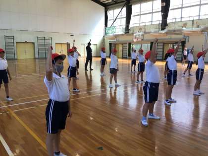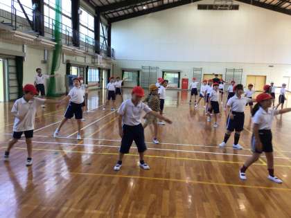 やまびこフェスティバルに向けて、ダンスの練習です。ダンスの動きを覚えた子は大きく動くことを目標に練習しました。