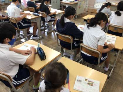 10/1 6年社会 公開日 2025/10/01 更新日 2025/10/01 各学年から 6年社会では、前時に引き続き、「室町時代について考えよう」というめあてで学習を進めていました。能と狂言にかかわる説明を聞き、ワークシートに記入をしていました。