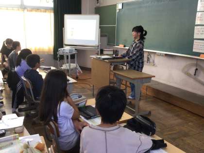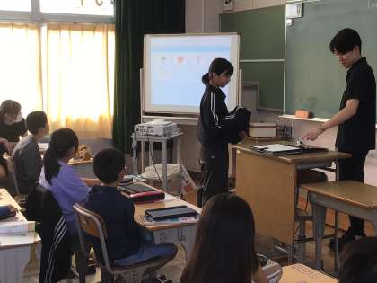 10/2 5年生外国語 公開日 2025/10/02 更新日 2025/10/02 各学年から 5年生外国語では、「パフォーマンステスト」を行いました。一人ずつ前に出て、プロジェクターでうつしながら発表しました。とても上手に英語で発表ができました。