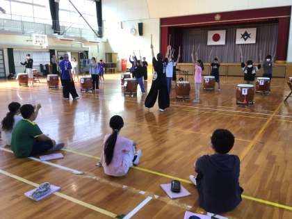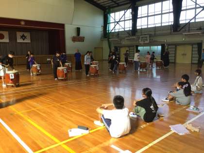 10/2 6年生音楽 和太鼓体験 公開日 2025/10/02 更新日 2025/10/02 各学年から 6年生音楽では、和太鼓体験を行いました。「早川流 やぐら太鼓 保存会」の皆様を講師にお招きし、いろんなリズムで和太鼓をたたきました。みんなで気持ちを一つにして、音を合わせることができました。