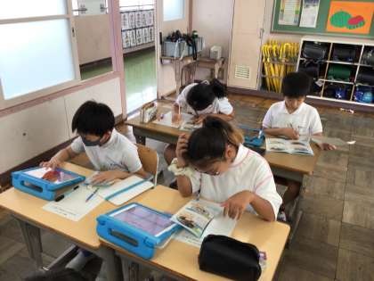 10/3 4年総合 公開日 2025/10/03 更新日 2025/10/03 各学年から 4年総合では、「岩本川にすんでいる生き物について調べよう」というめあてで学習を進めていました。学習用タブレットやリーフレットを使って、調べたことをワークシートにまとめていました。