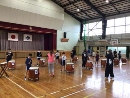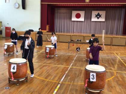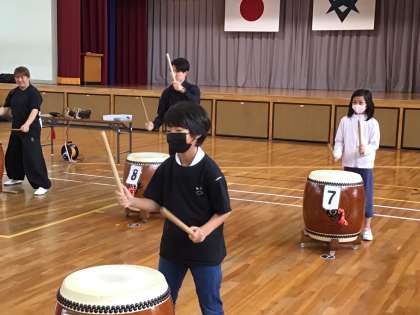 10/3 5年音楽2 公開日 2025/10/03 更新日 2025/10/03 各学年から 今日の2限の和太鼓体験の様子です。保存会の方々に合わせて太鼓をたたきました。子どもたちは緊張した表情をしながらも、楽しく体験していました。