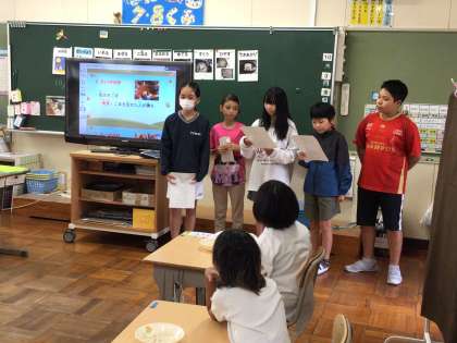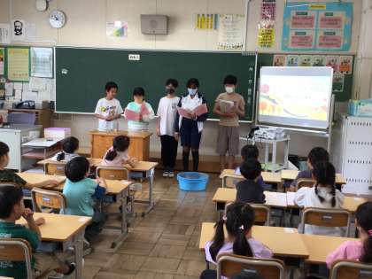 10/3 どんぐりごま説明会 公開日 2025/10/03 更新日 2025/10/03 各学年から 今日のスキルタイムの時間に6年生が各教室に出向き、どんぐりごま説明会を行いました。どんぐりごま大会の説明です。6年生ははきはきとわかりやすく説明をしていました。