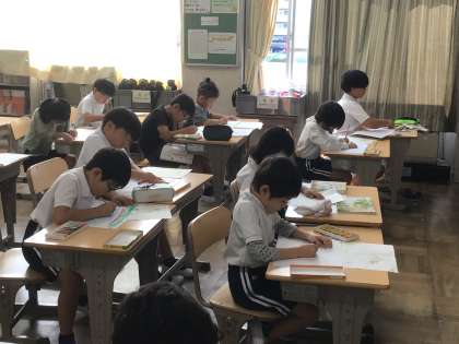10/6 2年生国語 公開日 2025/10/06 更新日 2025/10/06 各学年から 2年生国語では、「絵を見てお話を描こう」というめあてで取り組みました。どんなお話になるか考えて文章を書き、画用紙にクレヨンで絵を描きました。