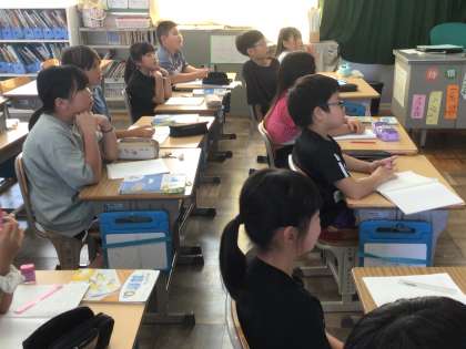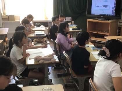 4年生算数では、「割合」の学習をしています。今日は、「何倍になっているか」を比べました。イルカとクジラで元の体長と成長した体長が何倍になっているかを考えました。