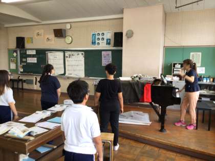 5年音楽では、「夢の世界を」のソプラノパートとアルトパートをそれぞれ歌い、2部合唱にチャレンジしていました。響く声について意識して歌っているのが伝わってきました。