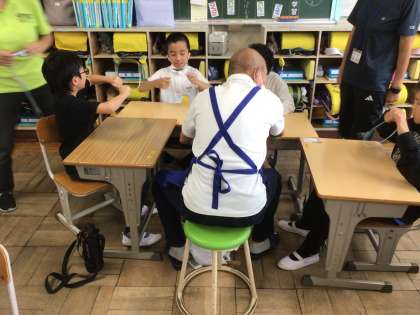 1年生生活科「ものづくり教育プログラム」 シャボン玉の「フラッパー」作り