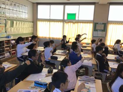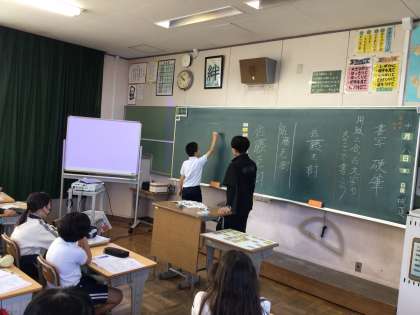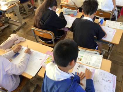 10/8 5年書写 公開日 2025/10/08 更新日 2025/10/08 各学年から 5年書写では、「用紙に合った文字の大きさで書こう」というめあてで硬筆を進めていました。「飛行」の「飛」という字の書き順をみんなで確かめていました。
