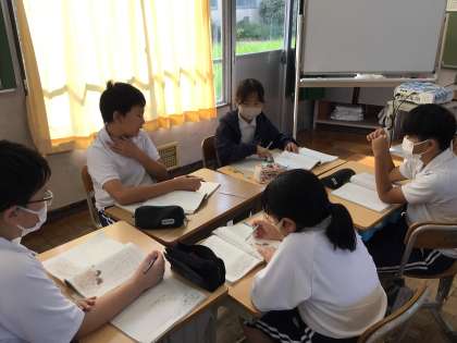 10/8 6年国語 公開日 2025/10/08 更新日 2025/10/08 各学年から 6年国語では、「模型のまち」という話を読みました。問屋、お寺の境内など子どもたちに馴染みのない単語もたくさん出てきたので、一つ一つ意味を伝えていました。「真由の兄とのかかわりを読み取ろう」というめあてで学習を進めていました。