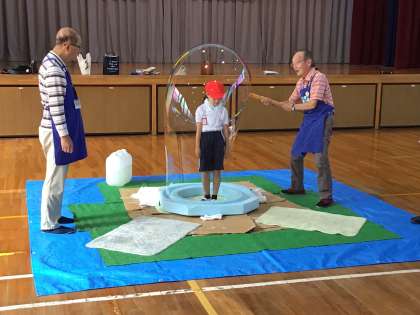 10/8 1年生活科1 公開日 2025/10/08 更新日 2025/10/08 各学年から 昨日に引き続き、ものづくり教育プログラムで「めざせ!シャボン玉マスター」を実施しました。今日はシャボン玉名人から3種類の技を教えてもらい、体験を行いました。