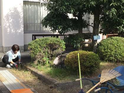 校内整備員さんが草刈機で中庭のイチョウのところや正門横の池の周りの草を刈ったのですごくきれいになりました。また、公務手さんも花壇や門付近の清掃をされています。学校を陰で支える人たちのおかげで、平井小学校はいつもきれいに保たれています。ありがとうございます。