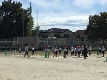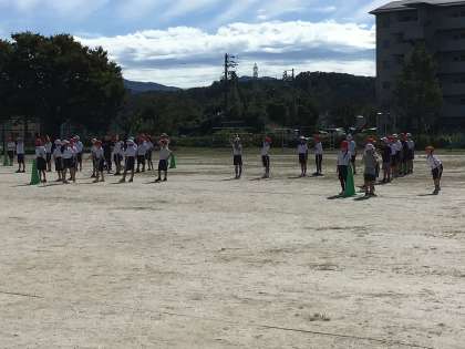 10/9 1、2年生体育 公開日 2025/10/09 更新日 2025/10/09 各学年から 1、2年生体育では、合同でやまびこフェスティバルにむけて練習しました。運動場で、自分の場所を覚えたり、移動の練習をしたりしました。